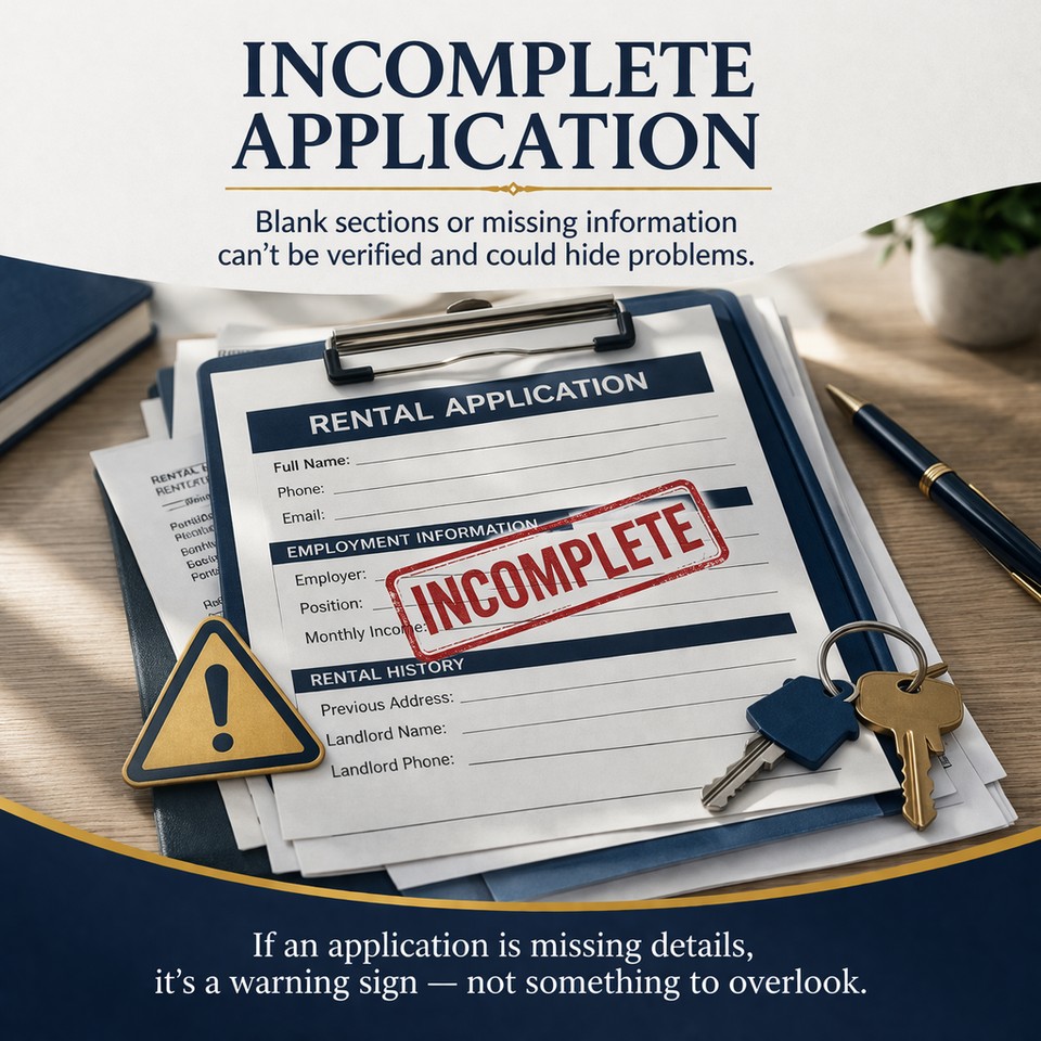 If an applicant leaves sections blank — especially employment, rental history, or references — that’s a problem.